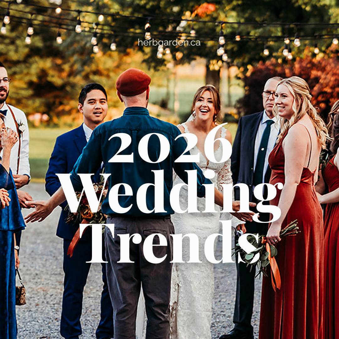 2026 had arrived! If you know someone newly engaged, email us about new pricing options for our 2026 wedding season herbs@herbgarden.on.ca